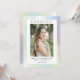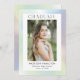 Invite guests to celebrate the graduate with holographic graduation party invitations. The modern graduation party invites feature the graduate's photo framed in white with a multi-colored holographic background in shades of purple, blue, green, and yellow. "Graduate" is displayed at the top in black modern lettering. Personalize the front of the holographic graduation party invites by adding the graduate's name, school name, and graduation year. The invite reverses to display your graduation party details with a matching holographic background. The unique graduation party invites are perfect for both high school and college graduation parties.