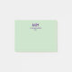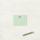 Clean design. Post it note pad. Your initials in purple against pale green.