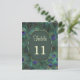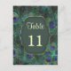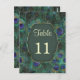 Green and purple peacock feathers Table number Postcard. You can change the table number to your requirements (2, 3...7...10...) - each time a new card, and add all these cards to your cart. On the back - you can put your gest names.