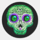 Green & Purple Sugar Skull Black Halloween Party Classic Round Sticker