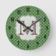 Green Quarterfoil Lattice Quarter Foil Monogram Initial Personalised Custom Fabric Pattern Wall Clock