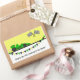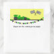A fun sticker with green race car on yellow background with bunting and chequered race flags. Customise for party bags, envelope seals for invitations, etc. Coordinating invitation available in store. Some graphics ©Riefka Designs
