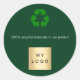 Add your own business logo. Emerald green coloured background. A green recycling symbol. Personalise and add your text, product information.