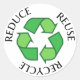 Stickers featuring a bold recycling symbol in three shades of green and the black "Reduce reuse recycle"