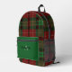 Masculine, kelly green, cranberry red and black plaid backpack. It has a kelly green pocket on the front where you can add your name and initial to it to personalise it just for you.