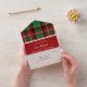 This all in one wedding invitation card is special. You get your invitation card and the RSVP card all in one. It is a customisable card with your Intro, names, occasion, date, adress, rsvp and other backgrounds to your preferations. It shows a harmonious blend of green, red, black, white and it has fitting red + green tones and white typography. It is a green, red and black scottish pattern. The minimal burgundy and green background is for your customisation and on the backside for your adress. Hobinishop. Hobinishop