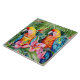 Green, Red, Blue Parrots and Tropical Flowers Tile