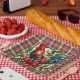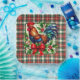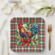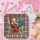 A Green And Red Plaid Christmas Square Paper Plate Of A Cute Rooster For That Country Look