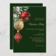 Invite your team to celebrate the holiday season with this stylish and modern Christmas party invitation. Featuring an elegant green background, the design is beautifully decorated with festive red and gold baubles, greenery, and a pine cone for a classic touch. Personalise it with your company’s event details to create a professional and sophisticated invitation, perfect for your corporate holiday gathering.