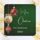 For a Christmas party favours or gift wrapping. A rusitc green uneven coloured background. Decorated with red and gold baubles. Personalise and add your name, year. Text: Merry Christmas