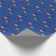 Green & red gondolas with skis on blue Christmas wrapping paper.