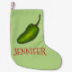 Holiday stocking features an original marker illustration of a spicy green jalapeno pepper. Simply personalise with your name for a one-of-a-kind Christmas decoration!