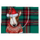 Green Red Plaid Bull Terrier Dog Lover Holiday Large Gift Bag