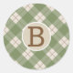 Green Red Rustic Country Plaid Kraft Monogram Classic Round Sticker