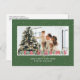 Personalised green photo Christmas postcards featuring snow on a green background and a marquee sign font title decorated with Christmas lights. Easily personalise this green Christmas postcard with your image, text, year and a family name. You can also change the background and font to any colour.