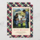 Celebrate the season in classic style with this personalised holiday card featuring a festive red and green tartan plaid border and space for your favourite family photo. "Happy Holidays" is printed in bold red text, with a heartfelt message below that can be fully customised with your own greeting and family name. A timeless and cosy design perfect for sharing joy, memories, and warmth with loved ones this Christmas and holiday season.