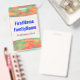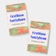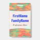 This badge design features an abstract splotchy cloudy pattern that could be said to resemble the appearance of some watercolor paintings. It features various shades of colours like green, red and orange. It also features a customised name in blue coloured text within a light coloured area. There is also a custom message under the name that could show information such as a job role name, or a profession, or a business/company name. [~Z0000176]