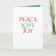 Green Red White Peace Love Joy Christmas Holiday Card