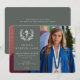 A formal but modern graduation photo announcement to celebrate professional nursing qualifications. Featuring a full-bleed photo with a colour overlay and the Asclepius symbol (with the 'RN' abbreviation) surrounded by a laurel wreath. The template text for the graduate’s details is completely customisable, so the font size, style, colour and placement can be changed. The back features a solid coloured background and template text for a longer message. If you would prefer to include no text on the back, just delete it before ordering. If you would prefer a photo on the back of the card, delete both the coloured background and the template text and upload your own photo. The design is available in other colours and with different medical qualifications in my store.
