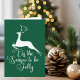 An elegant white reindeer leaps on a beautiful green holiday card with the beautiful Christmas song lyric Tis The Season To Be Jolly. Customise the inside with your own custom message.