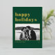 Happy Holidays! Send your holiday wishes to family and friends with this customisable modern holiday card. It features retro bold typography with a Christmas tree accent on a red background. Personalise this photo holiday card by adding your own details. This gold foil happy holidays card is available in other colours.