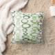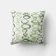 This pillow is covered with mid century modern circles in two shades of green.