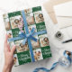 Green Retro Merry Christmas Family 3 Photo Collage Wrapping Paper