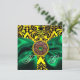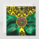 GREEN RIBBON GOLD YELLOW BLACK DAMASK MONOGRAM INVITATION