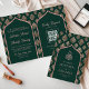 Green Rose Gold Damask Arch QR Code Muslim Wedding Invitation