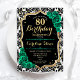 Green Roses Gold Black Damask 80th Birthday Invitation