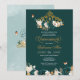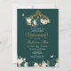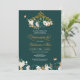 Quinceanera invitation in deep emerald or evergreen green featuring butterflies and a beautiful floral tiara . Visit shop for more variations including options with dolls in gowns in many skin tone and colour combinations