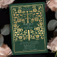 Set the tone for your mediaeval fantasy wedding with a bold invitation design—a grand gold sword surrounded by florals against a green background. Perfect for couples dreaming of an epic, romantic celebration. Make your love story legendary from the very first glance! NOTE: the gold featured in this design is NOT real foil.