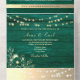 Celebrate your love amidst rustic charm with our elegant all-in-one wedding invitation, perfect for your barn wedding affair. Crafted on rustic wood backgrounds in rich emerald green, it exudes the warmth and cosiness of a countryside celebration. Adorned with vintage floral lace and golden string lights, it sets the scene for an enchanting evening under the stars. Customise your invitation with a personal picture of the happy couple on the back, adding a touch of intimacy and nostalgia. Complete with wedding details and an RSVP section, this invitation invites your guests to share in the magic of your special day, where rustic charm meets timeless elegance.
