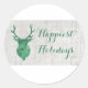 Green Rustic Watercolor Deer Holiday Classic Round Sticker