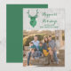 Green Rustic Watercolor Deer Holiday Photo Flat Card