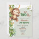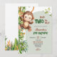 Green Safari Monkey Born Two Be Wild 2nd Birthday Invitation