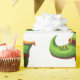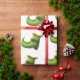 White wrapping paper with a pattern of green and yellow leprechaun boots. Illustrated by Patricia Alvarez.