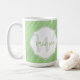 Enjoy your morning coffee or tea with a personalised Green Sand Ripples Personalised Mug. Mug design features a green sand ripple background and tag which can be personalised with your name and monogram. Additional gift items available with this design as well. If you need assistance with personalisation, please contact me directly.