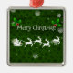 Green Santa's Sleigh and Reindeer Ceramic Ornament
