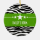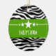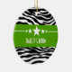 Trendy and modern Sassy Star Zebra Ornament featuring a chic black and white zebra print background and a bold chartreuse green border adorned with a fun star motif. This girly design may be customised with the personalised text of your choosing. Click "Customise It" to find more personalisation options.