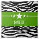 Trendy and modern Sassy Star Zebra Tile featuring a chic black and white zebra print background and a bold chartreuse green border adorned with a fun star motif. This girly design may be customised with the personalised text of your choosing. Click "Customise It" to find more personalisation options.