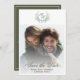 Make a timeless impression with this elegant save the date, featuring a stunning wedding photo template framed by a classic monogram motif wreath. The rich dark green floral design and classy romantic flower greenery create a sophisticated aesthetic, complemented by minimalist calligraphy script. Highlight your bride and groom monogram in a simple photo template that exudes traditional formal style with a soft simplistic touch. Perfect for announcing your special day with elegance.