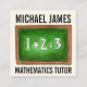 Business card design features an original colour illustration of a green chalkboard with a simple math equation. Great for a math teacher or tutor. Simply personalise with your information.
