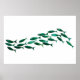 Green School of Fish Watercolor Poster