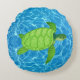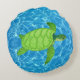 Green Sea Turtle on Turquoise Water Background Round Cushion