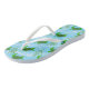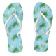 Green sea turtles swimming diagonally flip flops. Cute and simple sandals for your coastal summer vacation. These sea turtles are swimming in a clear blue ocean. You can see the seaweed underneath. This will make a great addition to your summer days at the pool or at the beach.