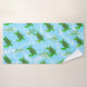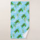 Green sea turtles swimming in the ocean in a diagonal pattern. Cute and unique blue beach towel for the whole family. The towel design features turtles swimming in the ocean's reef. You can also see the seaweed under the clear water. Perfect coastal beach towel for Summer.