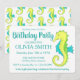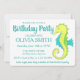 Green Seahorse Sea Horse Beach Birthday Party Invitation