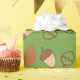 The "Green Seamless Wrapping Paper: Cosy Fall Hazelnut" captures the spirit of fall with hazelnuts and leaves in a festive design. Perfect for wrapping gifts during Thanksgiving or any cosy fall gathering.