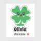 A trendy green shamrock clover leaf name sticker with a modern calligraphy script font. Perfect for a natural green aesthetic for st patricks day.